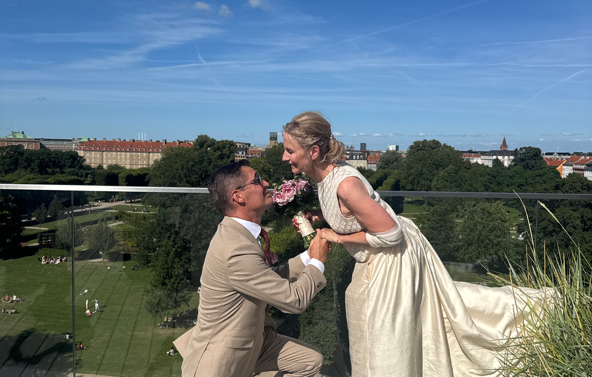 Vi mødtes en kølig efterårsaften, hvor Merry var skeptisk, og Claus var… stædig (læs: han nægtede at gå hjem, før hun havde smilet bare én gang). Det var ikke det klassiske kærlighed-ved-første-blik; mere sådan et “okay da, lad os dele endnu en kop kaffe og se, hvad der sker”. Men der skete hurtigt noget: et blik, en fælles latter – og pludselig trak en usynlig elastik os mod hinanden. Resten er efterhånden historie … og nu siger vi begge JA til et liv fyldt med kærlighed, grin og (fodbold)eventyr.